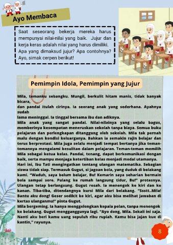 Mila sebagai ketua kelas. Pandai, tenang, dapat berkomunikasi dengan