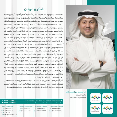 واض ٌح في تحقيق أهداف الشركة .كما أتوجه بالشكر إلى فريق العمل في وادي مكة للتقنية