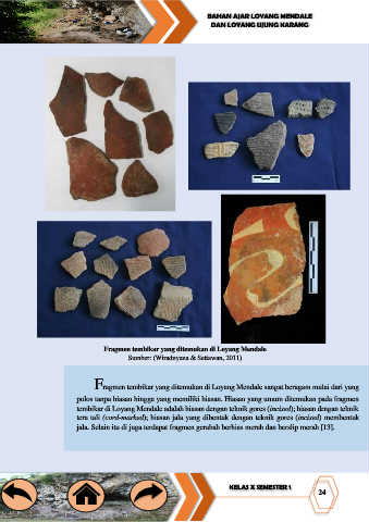 Fragmen tembikar yang ditemukan di Loyang Mendale sangat beragam mulai dari yang