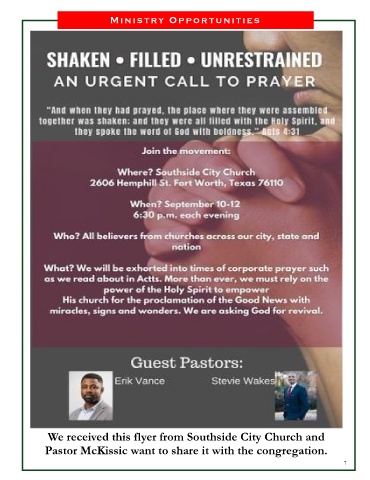 M i n i s t ry O p p o r t u n i t i e s We received this flyer from Southside City Church and Pastor McKissic want to share it with the congregation. 7