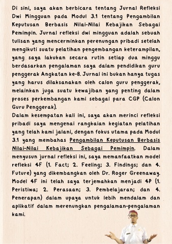 Di sini, saya akan berbicara tentang Jurnal Refleksi