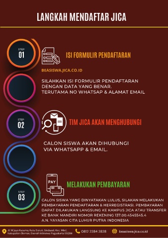 Jl. Wijaya Kusuma, Kutu Dukuh, Sinduadi, Kec. Mlati, 0812 2284 2828 beasiswa.jica.co.id