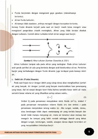 dengan turbulen. Contoh aliran turbulen inilah aliran sungai saat banjir.