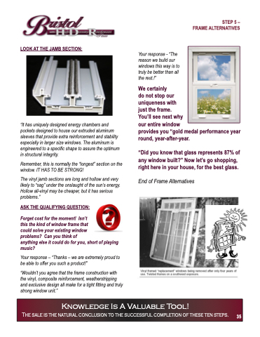 “Wouldn’t you agree that the frame construction with the vinyl, composite reinforcement, weatherstripping and exclusive design all make for a tight fitting and truly strong window unit.”