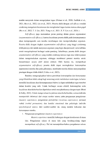 (argumentation self-efficacy), karena keyakinan peserta didik pada kemampuannya