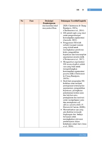 No Fase Deskripsi Dukungan Teoritik/Empirik