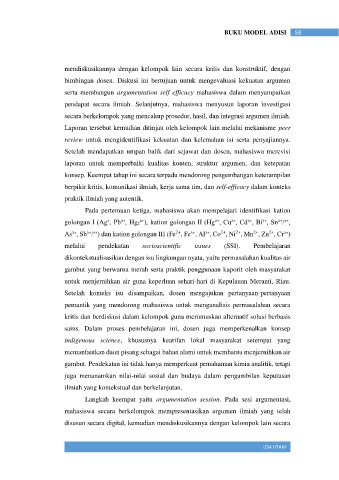 serta membangun argumentation self efficacy mahasiswa dalam menyampaikan