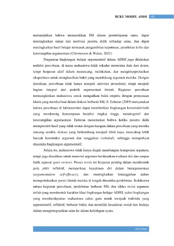 Penguatan lingkungan belajar argumentatif dalam ADISI juga dilakukan