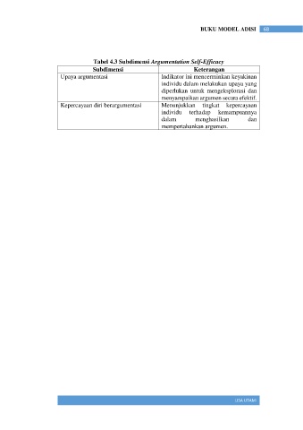 Tabel 4.3 Subdimensi Argumentation Self-Efficacy