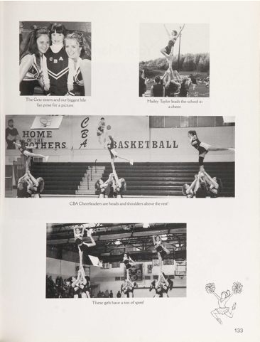 The Getz sisters and our biggest Ittle fan pose for a picture. Hailey Taylor leads the school in a cheer. CBA Cheerleaders are heads and shoulders above the rest! These girls have a ton of spirit!