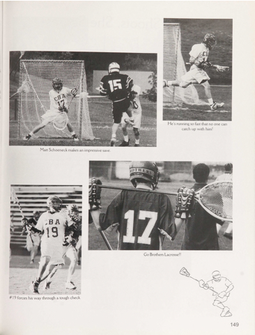 Matt Schoeneck makes an impressive save. y W'^ #19 forces his way through a tough check. Go Brothers Lacrosse!! He's running so fast that no one can catch up with him!
