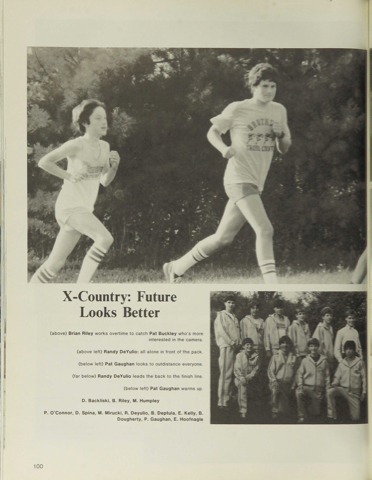 (above left) Randy DeYulio: all alone in front of the pack. (below left) Pat Gaughan looks to outdistance everyone. (far below) Randy DeYulio leads the back to the finish line. (below left) Pat Gaughan warms up.