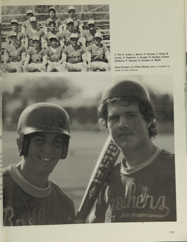 T. Till, C. Todd, L. Sacco, P. Conole, T. Kelly; B. Lyons, C. Hummel, J. Corapi, R. Hartley, Coach Dotterer; F. Stoyan, D. Krause, G. Wells Dave Krause and Pete Stoyan take a monnent to pose for the camera. 113