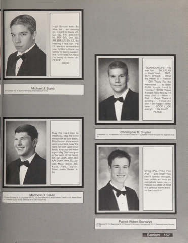 “GLAMOUR LIFE” This was fun . . . SK, LR, RJ — Yeah Yeah . , . SNIT- TER, SPECS — What tha Heck! S — forever — D!!! Thanx For the memories . . . its been FUN, tough, hard & “corney”. WOW These 4 years have flew by. I’ll missUall:-)—Mom + Dad + Gram Thanx 4 evythg . . . I tried my best I am happy I came here .. . GOOD LUCK every! ... BeCool!!!