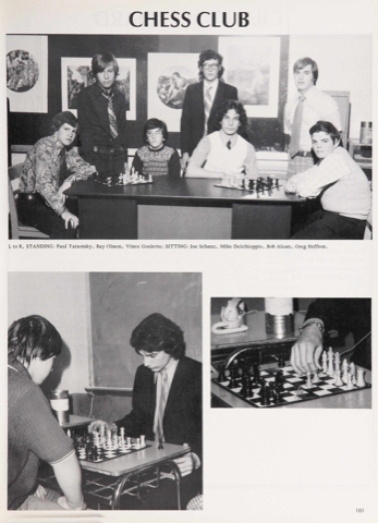 CHESS CLUB mm wexoYoV, L to R, STANDING; Paul Yatsonsky, Ray Olsson, Vince Goulette; SITTING; Joe Schanz, Mike Delchioppio, Bob Aloan, Greg Heffron.