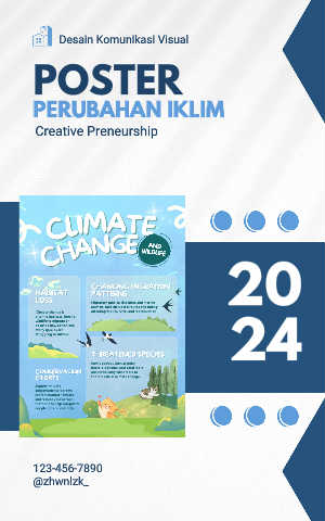Desain Komunikasi Visual POSTER PERUBAHAN IKLIM P E R U B A H A N I K L I M Creative Preneurship 20 24 123-456-7890 @zhwnlzk_