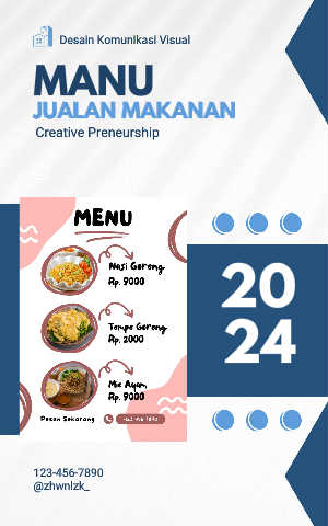 Desain Komunikasi Visual JUALAN MAKANAN MANU J U A L A N M A K A N A N Creative Preneurship 20 24 123-456-7890 @zhwnlzk_