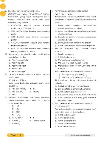 12. Menurut teori asam dan basa Bronsted- e. H3O + bersifat basa konjugasi menurut