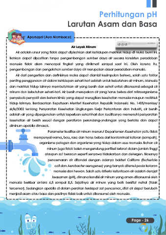 keasaman (pH), dimana kondisi air minum yang aman dikonsumsi oleh