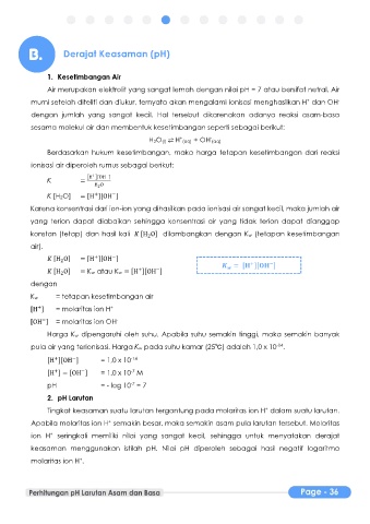 Air merupakan elektrolit yang sangat lemah dengan nilai pH = 7 atau bersifat netral. Air