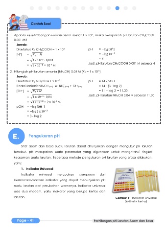 = 1 x 10 −8 = 10 M Jadi, pH larutan CH3COOH 0,001 M sebesar 4
