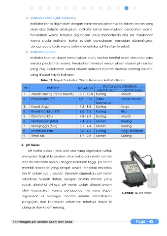 Tabel 11. Trayek Perubahan Warna Beberapa Indikator Buatan