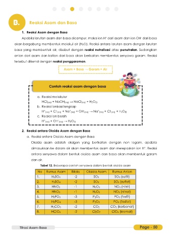 akan bergabung membentuk molekul air (H2O). Reaksi antara larutan asam dengan larutan
