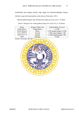 Tabel2.1 Kategori dan Ambang Batas Status Gizi Anak Usia 5 -18 Tahun