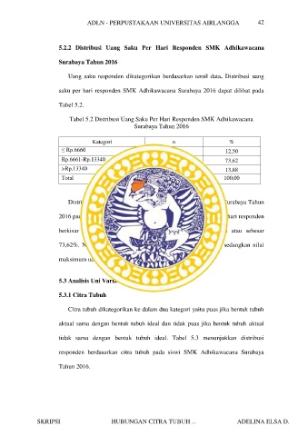2016 pada tabel 5.2 diketahui bahwa lebih dari 50% uang saku per hari responden
