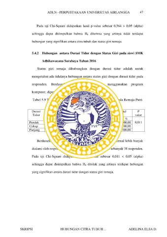 5.4.2 Hubungan antara Durasi Tidur dengan Status Gizi pada siswi SMK