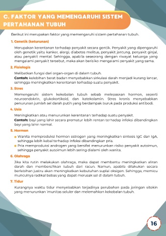 Berikut ini merupakan faktor yang memengaruhi sistem pertahanan tubuh.