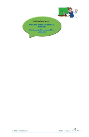 Link Video Pembelajaran : https://www.youtube.com/watch?v=o 5jZb67ygLY https://www.youtube.com/watch?v=d mSNYlk68GI 125 E-Modul Perpajakan Nita Sofia, S.Pd, M.Pd.E