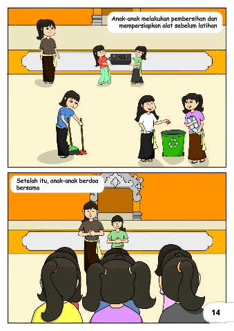 Anak-anak melakukan pembersihan dan mempersiapkan alat sebelum latihan Setelah itu, anak-anak berdoa bersama 14