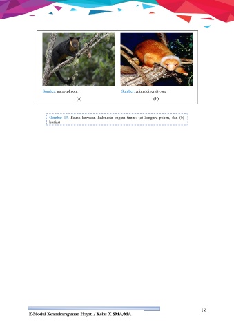 Sumber: naturepl.com Sumber: animaldiversity.org (a) (b) Gambar 13. Fauna kawasan Indonesia bagian timur: (a) kanguru pohon, dan (b) kuskus 18 E-Modul Keanekaragaman Hayati / Kelas X SMA/MA