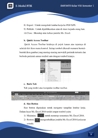 1)  Minimize,               untuk menutup sementara Ms. Excel 2016.