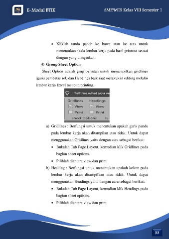 Sheet Option adalah grup perintah untuk menampilkan gridlines