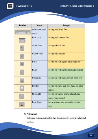 Submenu Alignment terdiri dari ikon (tombol) seperti pada tabel