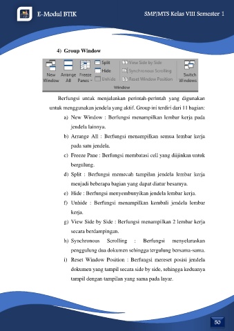 e) Hide : Berfungsi menyembunyikan jendela lembar kerja.