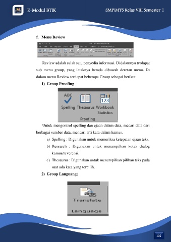 dalam menu Review terdapat beberapa Group sebagai berikut: