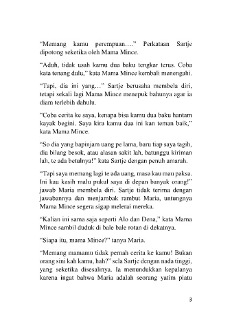 orang sini kah kamu, hah?” sela Sartje dengan nada tinggi,