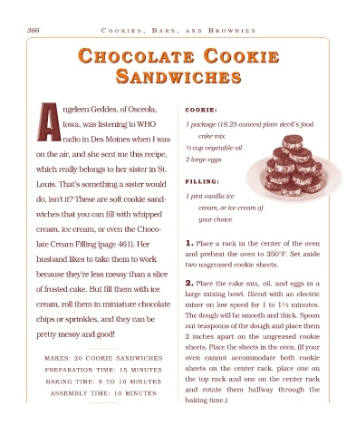 MAKES: 20 COOKIE SANDWICHES oven cannot accommodate both cookie