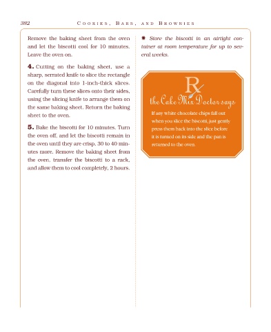 Remove the baking sheet from the oven Store the biscotti in an airtight con-