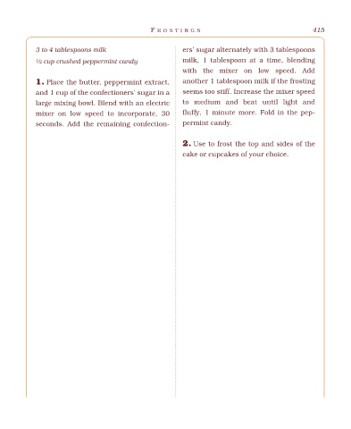 1. Place the butter, peppermint extract, another 1 tablespoon milk if the frosting