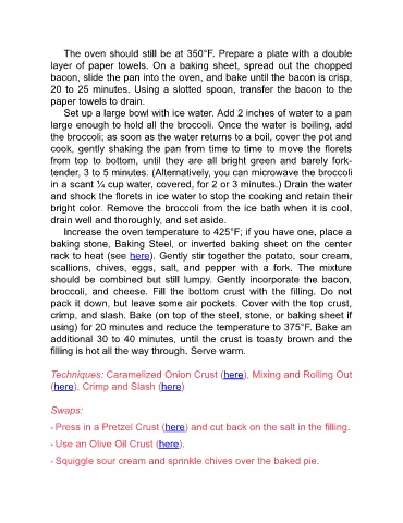 broccoli, and cheese. Fill the bottom crust with the filling. Do not