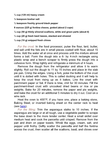 For the filling: Trim the asparagus stalks to 10 inches. If the