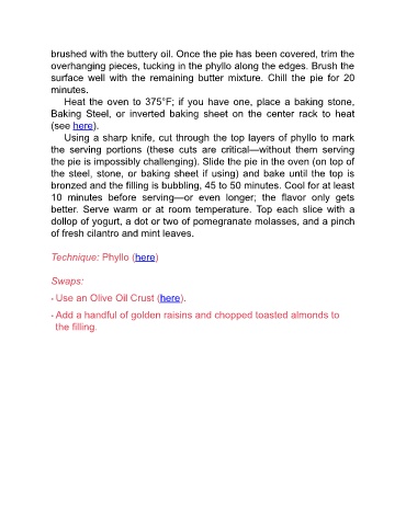 brushed with the buttery oil. Once the pie has been covered, trim the