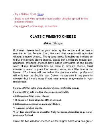 without pimento cheese. The ground rules: Tempting as it might be