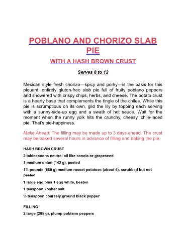 piquant, entirely gluten-free slab pie full of fruity poblano peppers