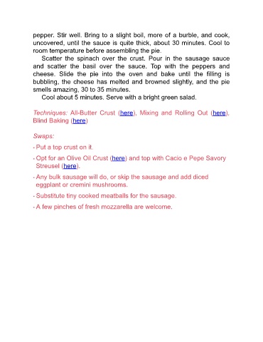 Scatter the spinach over the crust. Pour in the sausage sauce