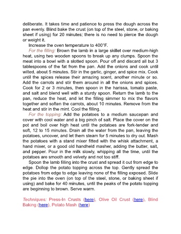 Techniques: Press-In Crusts (here), Olive Oil Crust (here), Blind